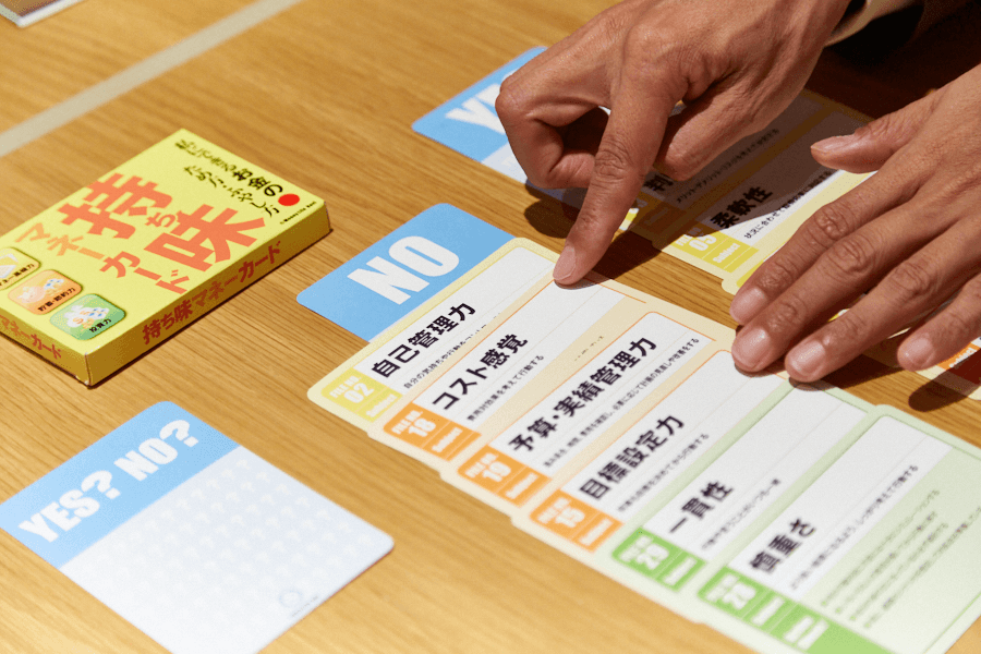 持ち味マネーカードは、39枚のカードから自分に当てはまるものを選び、お金に関する「得意な行動(持ち味)」を見つけるツールです。コツコツ貯める力や投資の向き不向きなど、自分に合った無理のないお金の増やし方や、人に任せるべき部分を明確にします。