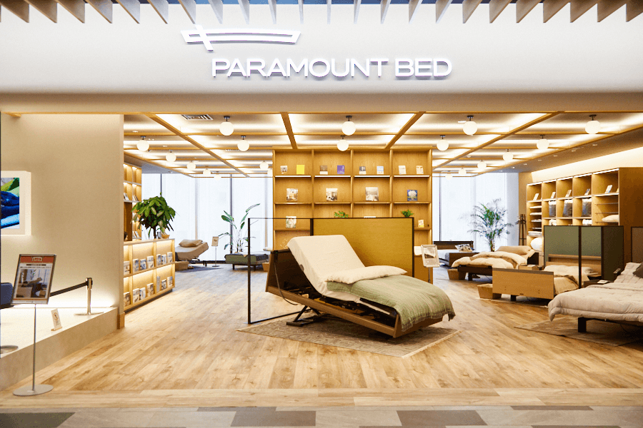 ここは、パラマウントベッドが全国に5拠点を展開する直営の眠りギャラリーの一つで、個人のお客さまへの販売、相談の窓口になっています。パラマウントベッドの下杉さんにご案内いただきながらお話をうかがいました。
