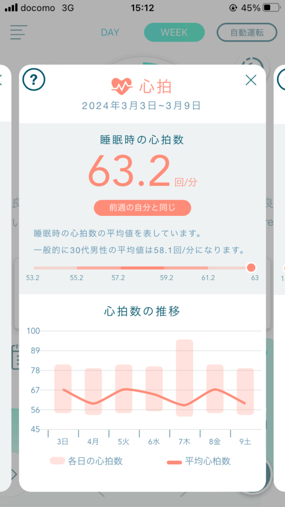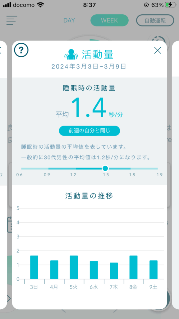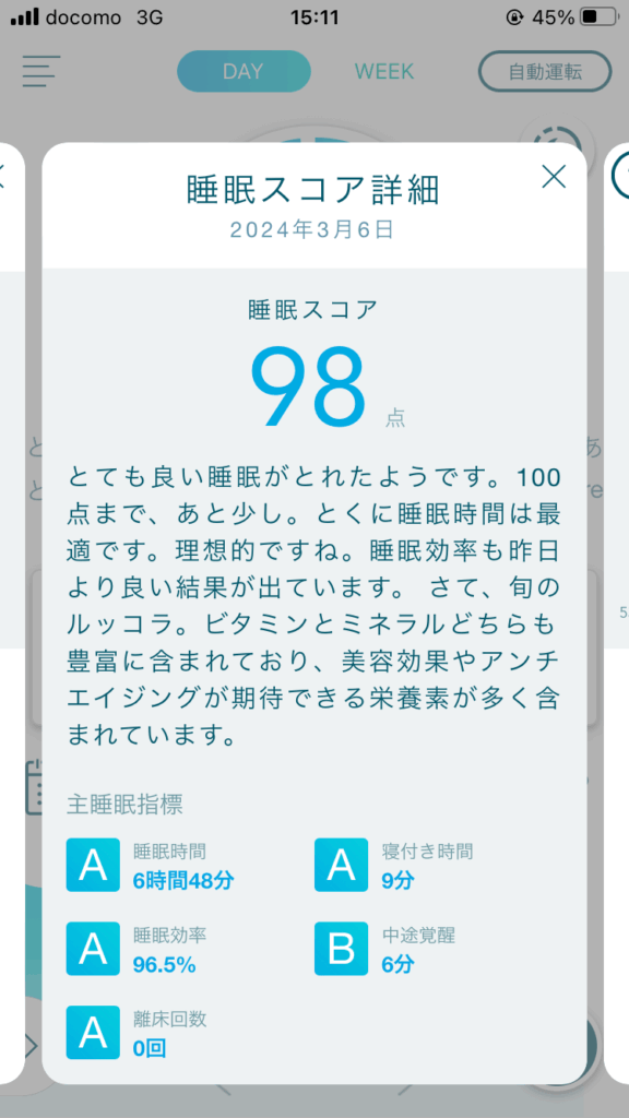 おっしゃるように、途中で目が覚めている様子がデータに現れています。でも、極端に眠れていないというわけではないと思います。ただ、1、2時間で目が覚めているので、寝つけていないっていう印象が強くなっているのかもしれませんね。