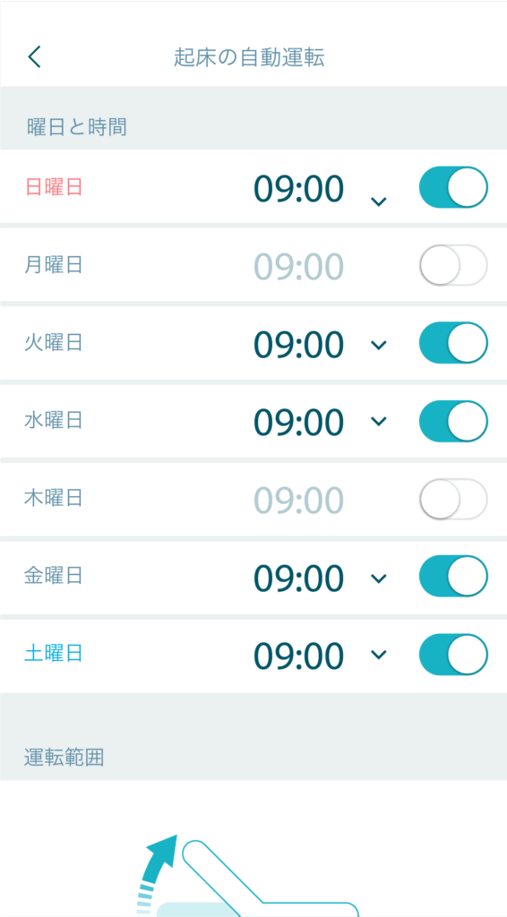 ●起床時間に合わせてベッドの背が上がり、心地よい目覚めをサポート