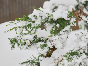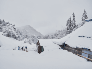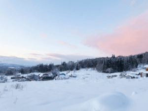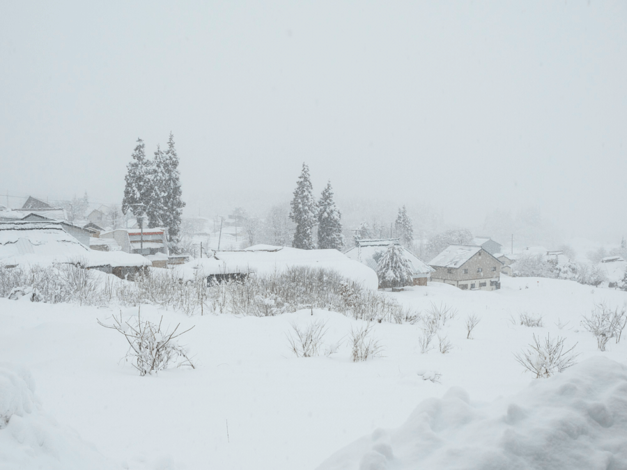 刺し子は、雪深い季節を楽しむための手しごと。ここ北志賀高原にも、本格的な冬がやってきました。11月下旬に降った初雪で、積雪30センチにもなったとか。雪囲いといった冬支度や雪下ろしは、ご近所の手を借りることもあるのだそうです。
