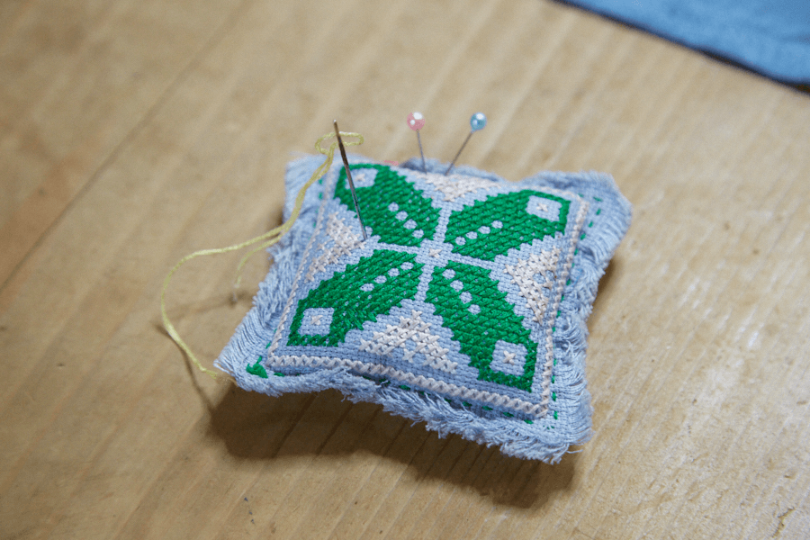 現代では、手芸として花ふきんに模様を刺したり、インテリアやファッションなどに取り入れられることも。サステナブルで美しいと、ヨーロッパの国々でも注目を集めているそうです。