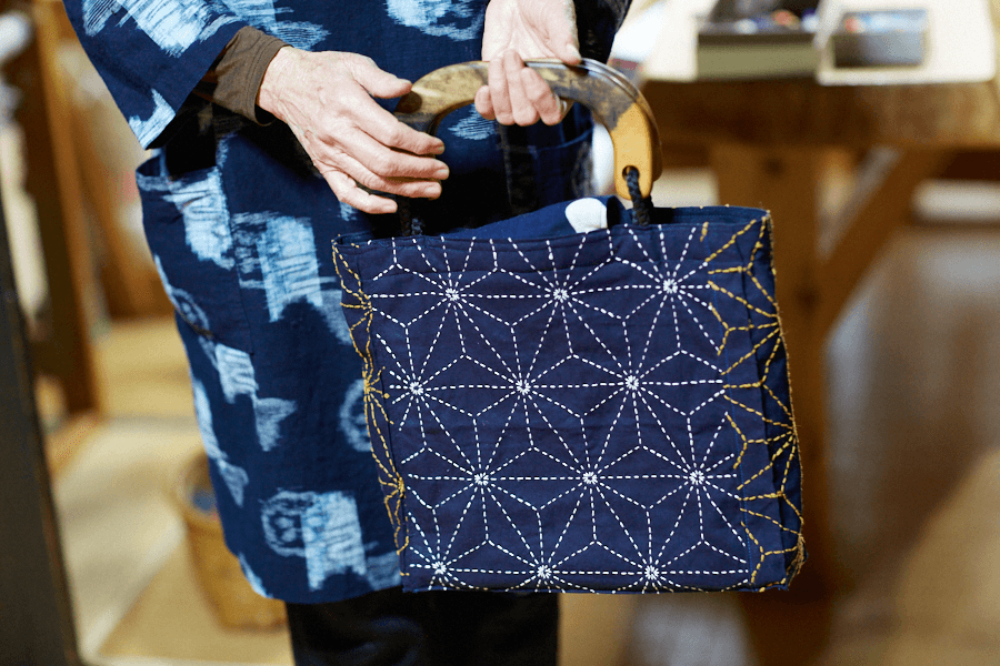百合子さんが刺し子を始めたのは5、6年前。山形県米沢市の「原方刺し子」の技術継承者である刺し子作家、遠藤きよ子さんのワークショップに参加したのがきっかけでした。