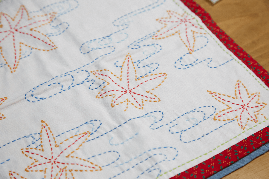 おしゃべりしながら、1時間ほどで完成。素朴でなんだかホッとする、人の手のぬくもりを感じるランチョンマットになりましたね。